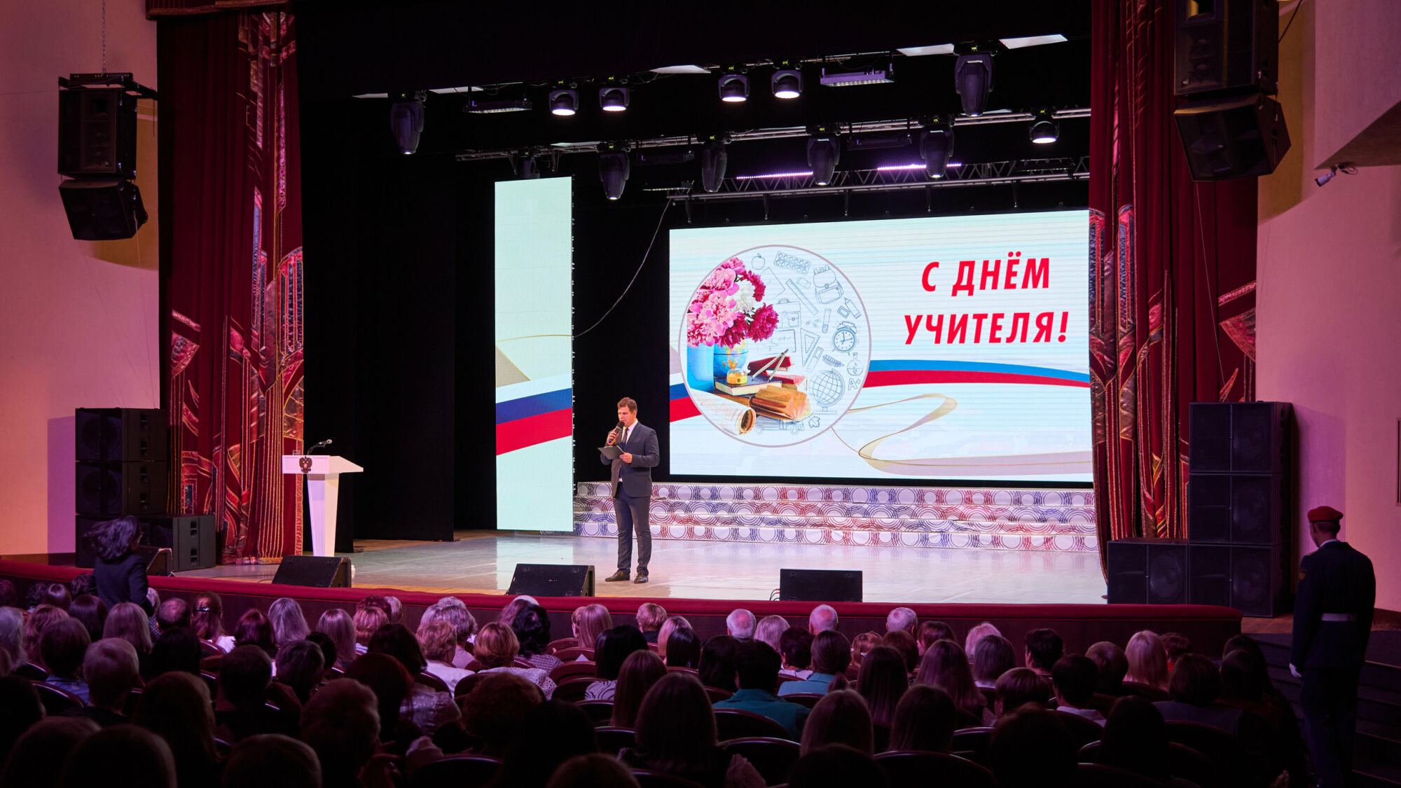 Ибрагимова Регина Радиковна, и.о. главы Ленинск-Кузнецкого муниципального округа, обратилась к собравшимся с приветственным словом. Она отметила неоценимый вклад педагогов в развитие образования и формирование будущего поколения.