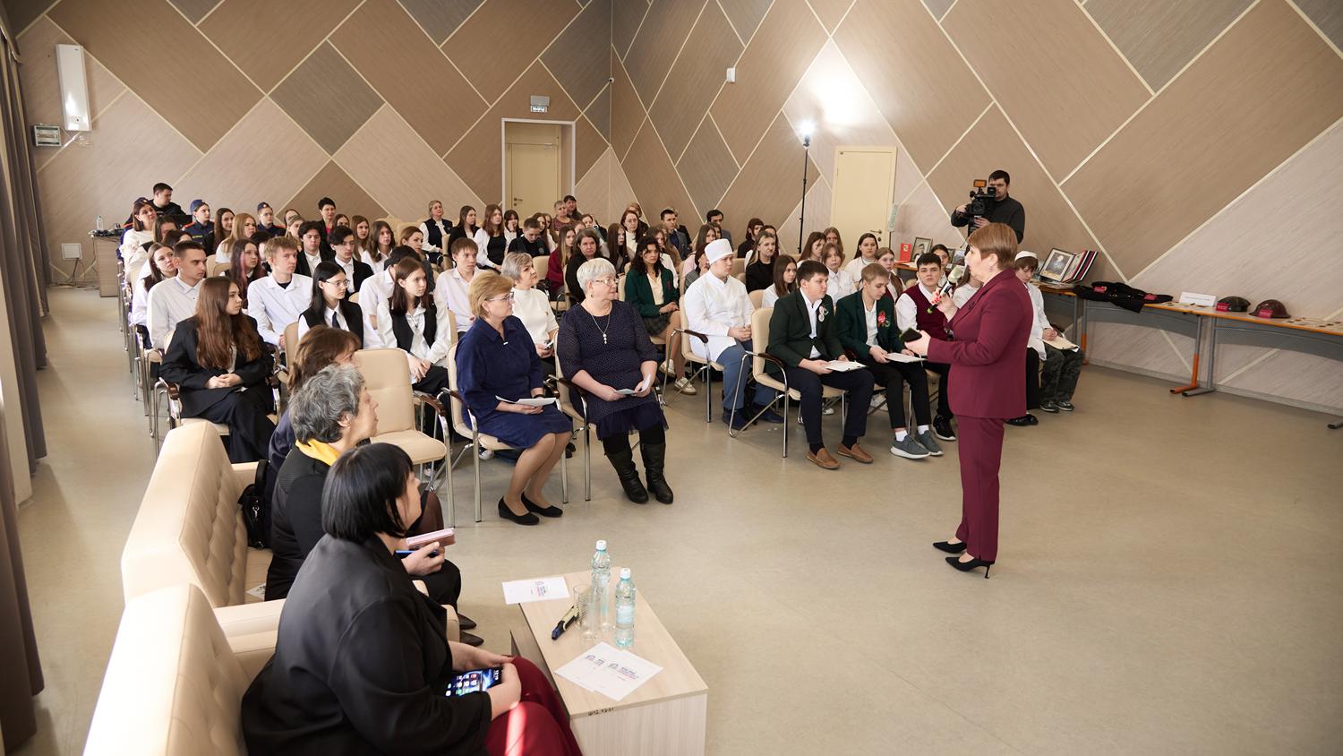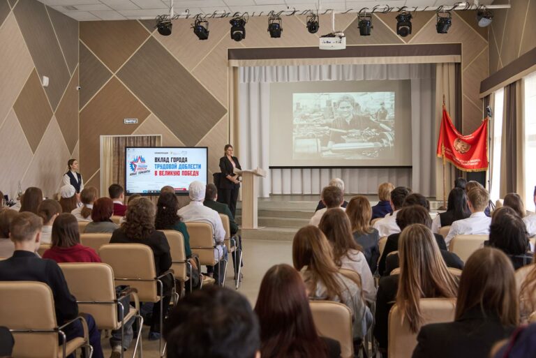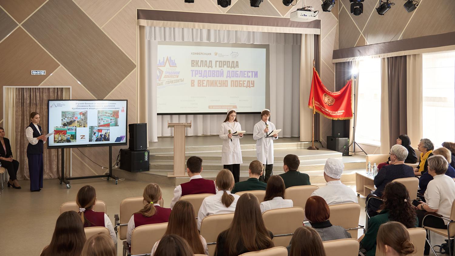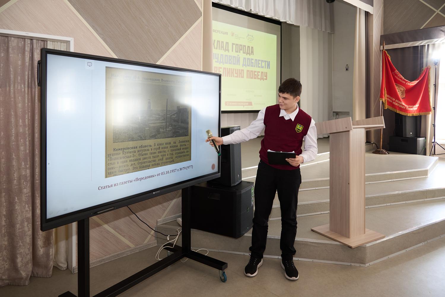 Ленинск-Кузнецкий являлся и местом эвакуации раненых солдат. В эвакогоспиталях нашего города работали как опытные, так и начинающие врачи. О «Медицинских кадрах Великой Победы» рассказали студенты Ленинск-Кузнецкого филиала ГБПОУ «Кузбасский медицинский колледж» Дворецкий Данил и Атапина Арина. А также ребята представили видеоролик, подготовленный студентами первого курса в поддержку бойцов специальной военной операции, о том, что и сейчас в настоящее время город, как и раньше вносит свой посильный вклад в Победу.