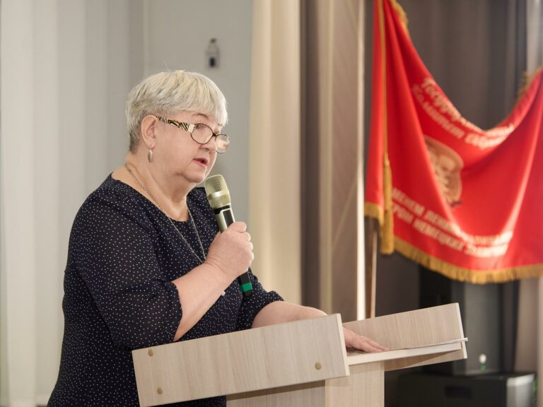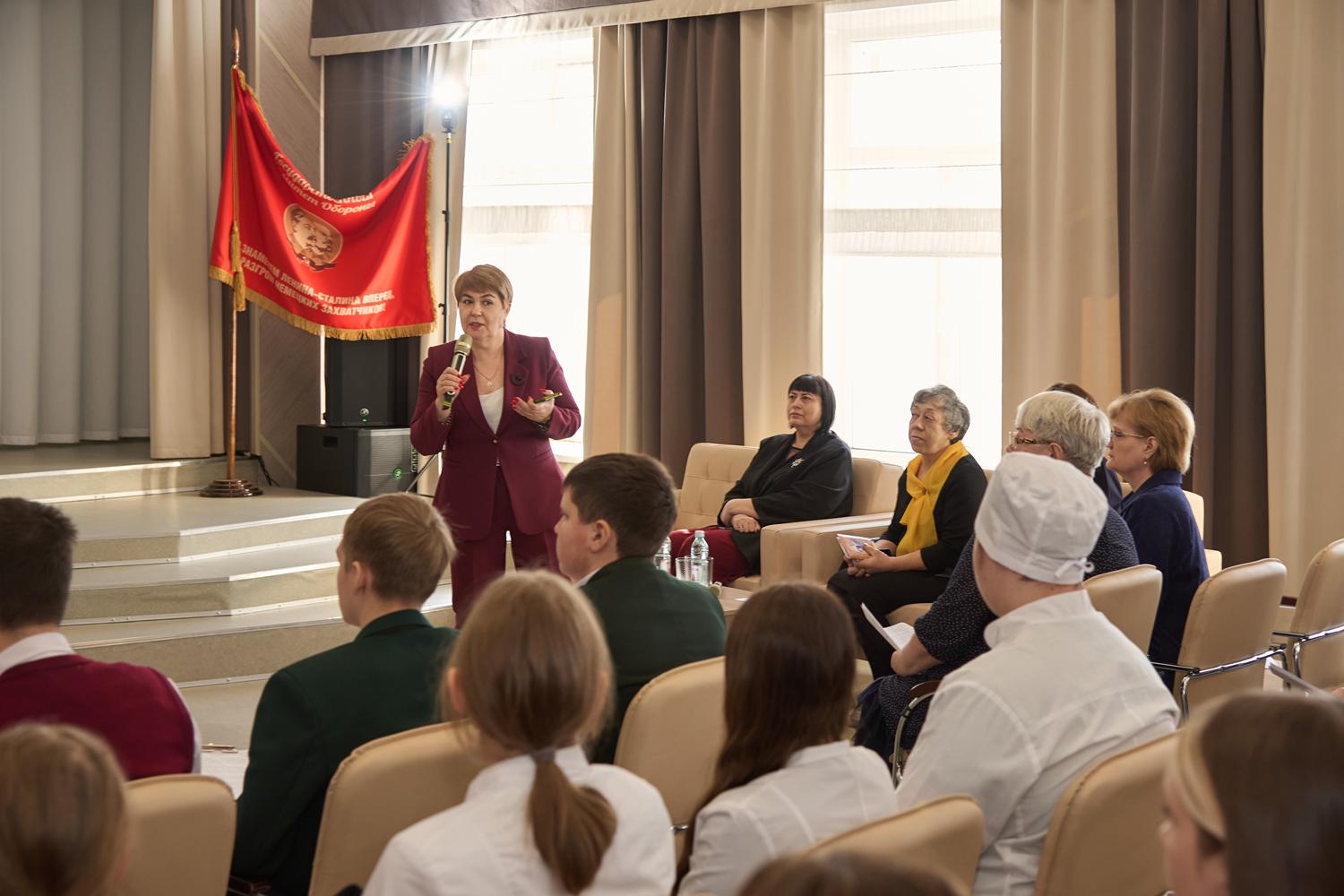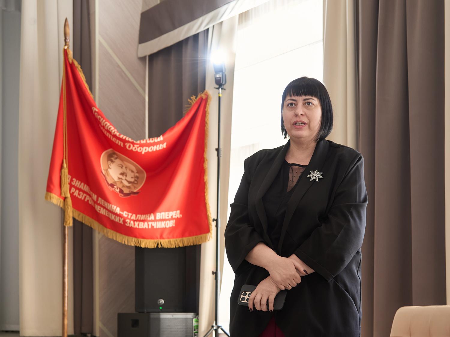 Журавлева Галина Петровна, председатель Совета ветеранов ООО «Завод Красный Октябрь», рассказала присутствующим об отваге жителей города, в том числе подростков в тылу.